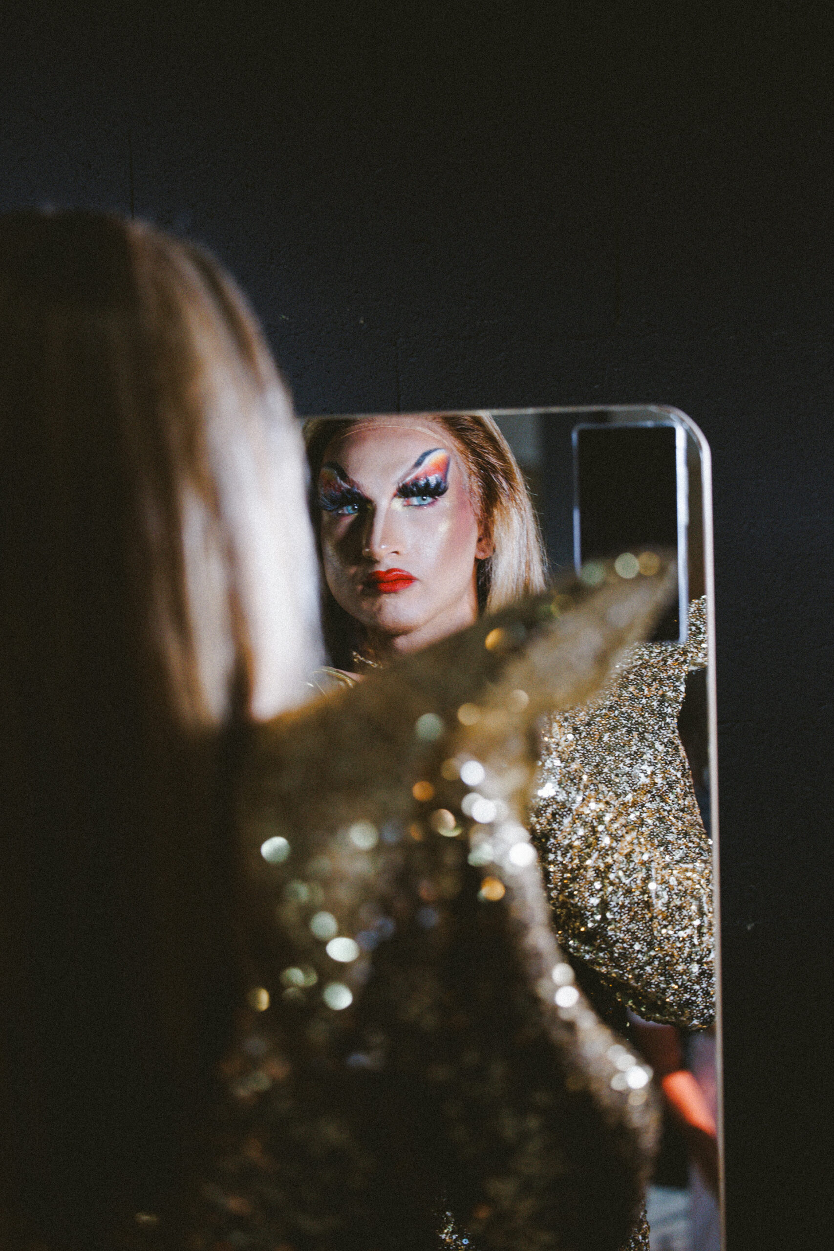 Je pense avoir un regard qu’on qualifierait de “female gaze”, c’est-à-dire un regard non dominant et non jugeant sur mes sujets. Sinon souvent j’entends de mes photos qu’elles ont un côté très “reportage”, que je capte “l’instant”, le moment “où ça se passe”, une étreinte, un sourire, un saut sur scène, une extase… Je pense aussi avoir un côté assez militant dans mes choix : les cabarets, les projets associatifs que j’accompagne en photos et souvent dans la communication plus globalement. De plus en plus, je m’enferme en studio et je travaille des directions artistiques plus marquées, plus personnelles, toujours avec une retouche un peu à l’argentique, mon premier amour.