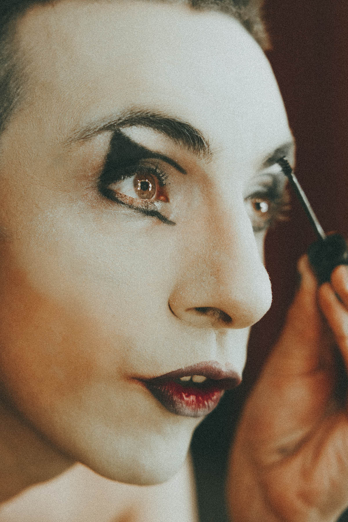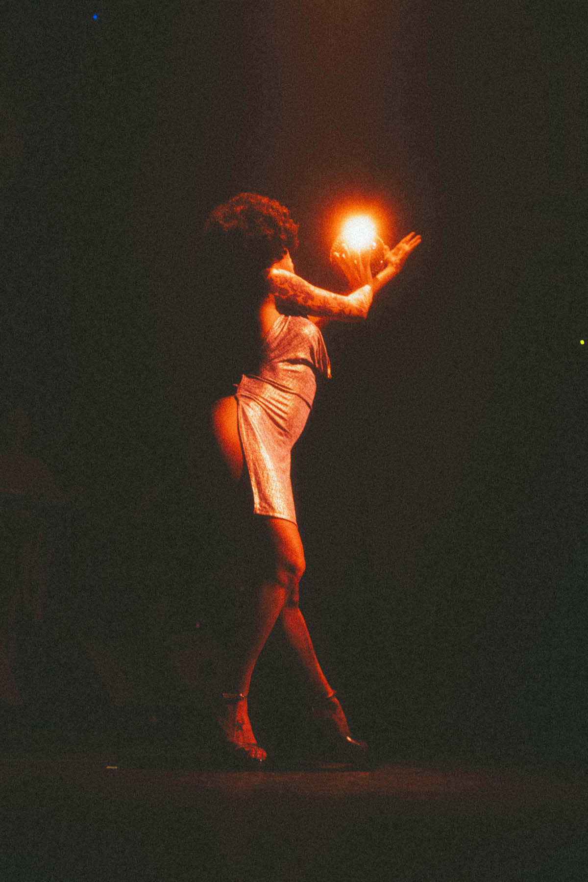 Depuis petite j’avais un petit boîtier amateur canon et je faisais des photos (ratées) de paysages et des lumières d’été en Finlande. Puis plus rien pendant 15 ans, à galérer dans plusieurs jobs sans trop trouver ma place. J’ai recommencé en amateur juste avant le covid avec un boitier argentique, l’Olympus OM-1N chiné pour un rien sur leboncoin. À la même période j’ai découvert les cabarets parisiens, le cabaret de poussière en particulier. Un endroit très libre artistiquement et visuellement renversant. Tout m’a plu, des propositions artistiques, aux propos militants. Alors, j’ai proposé de venir faire quelques photos pour les offrir ensuite chaque mois pour aider à promouvoir leurs spectacles. Maintenant j’y suis tous les mois bénévoles depuis 4 ans et je progresse sans cesse à leurs côtés. Parallèlement à ça, comme je fréquente beaucoup le milieu de la musique, j’ai aussi commencé à m’incruster dans des backstages, des tournées, studios, et j’avais toujours l’appareil photos. Il y à 3 ans, pour la première fois on m’a proposé de me payer pour faire des photos. J’ai alors peu à peu glissé vers une pratique professionnelle.